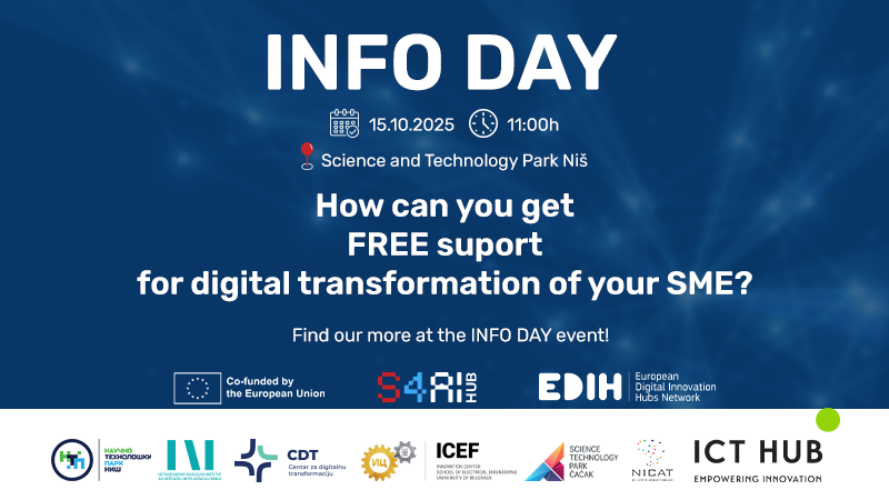 On Wednesday, October 15th at 11 AM, the Science and Technology Park Niš will host the Info Day of the S4AI Hub – Serbian European Digi...
